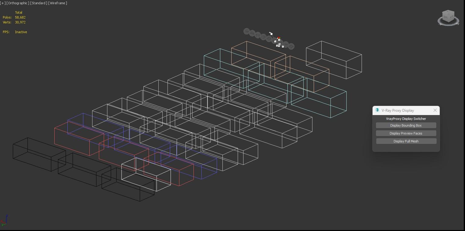 The V-Ray Proxy Display Switcher is a compact MAXScript utility designed to help 3ds Max users quickly manage the viewport display mode of all V-Ray Proxy objects in a scene. Whether you're optimizing viewport performance or reviewing detailed geometry, this tool lets you switch between bounding box, preview mesh, and full mesh modes with a single click.